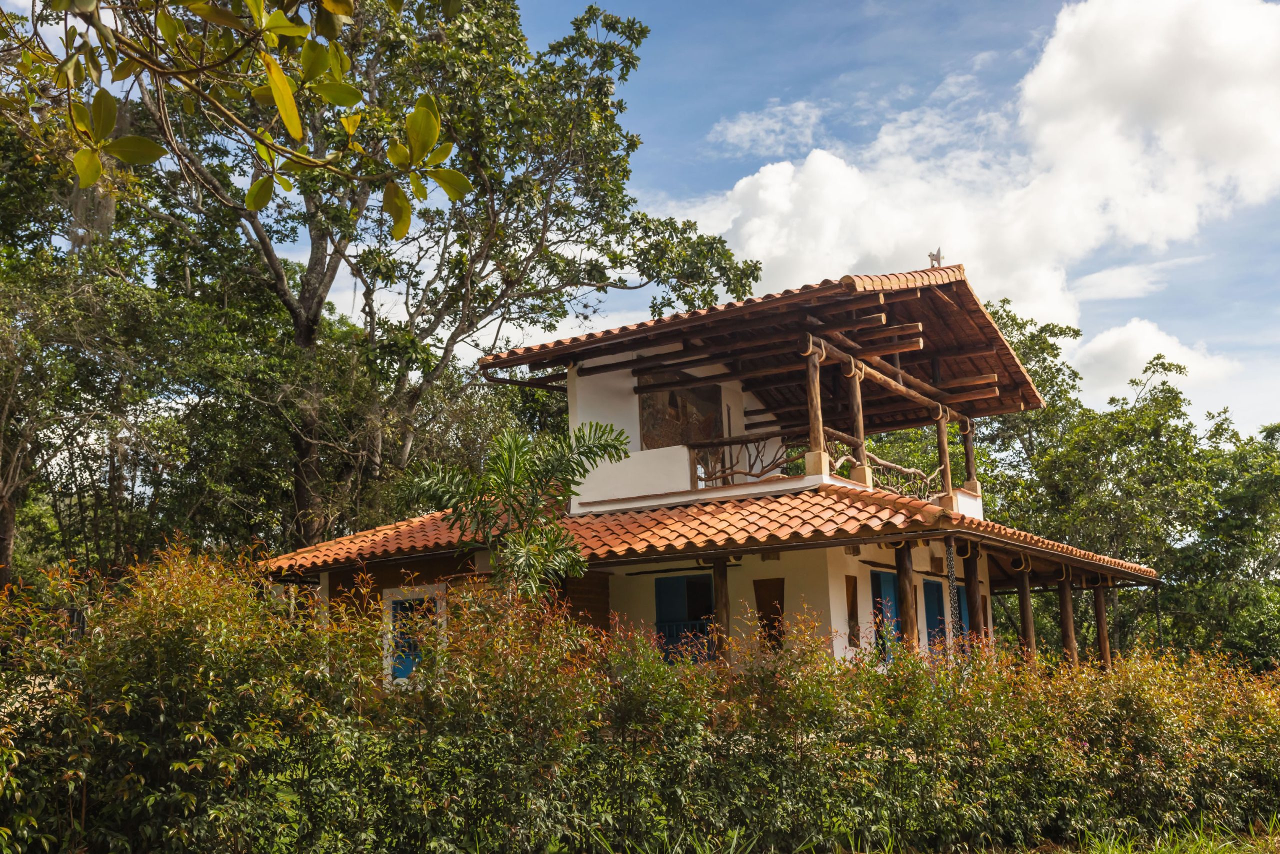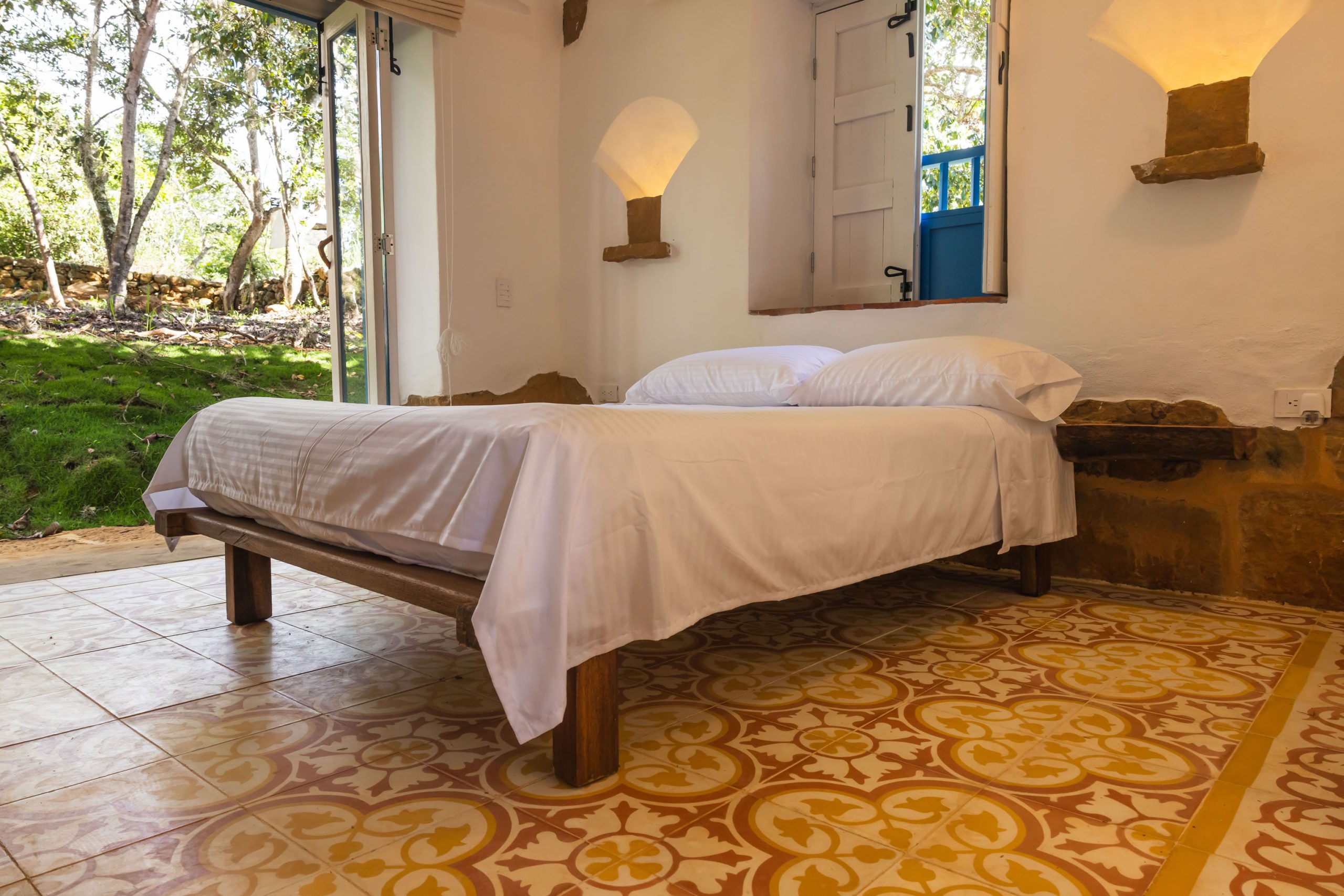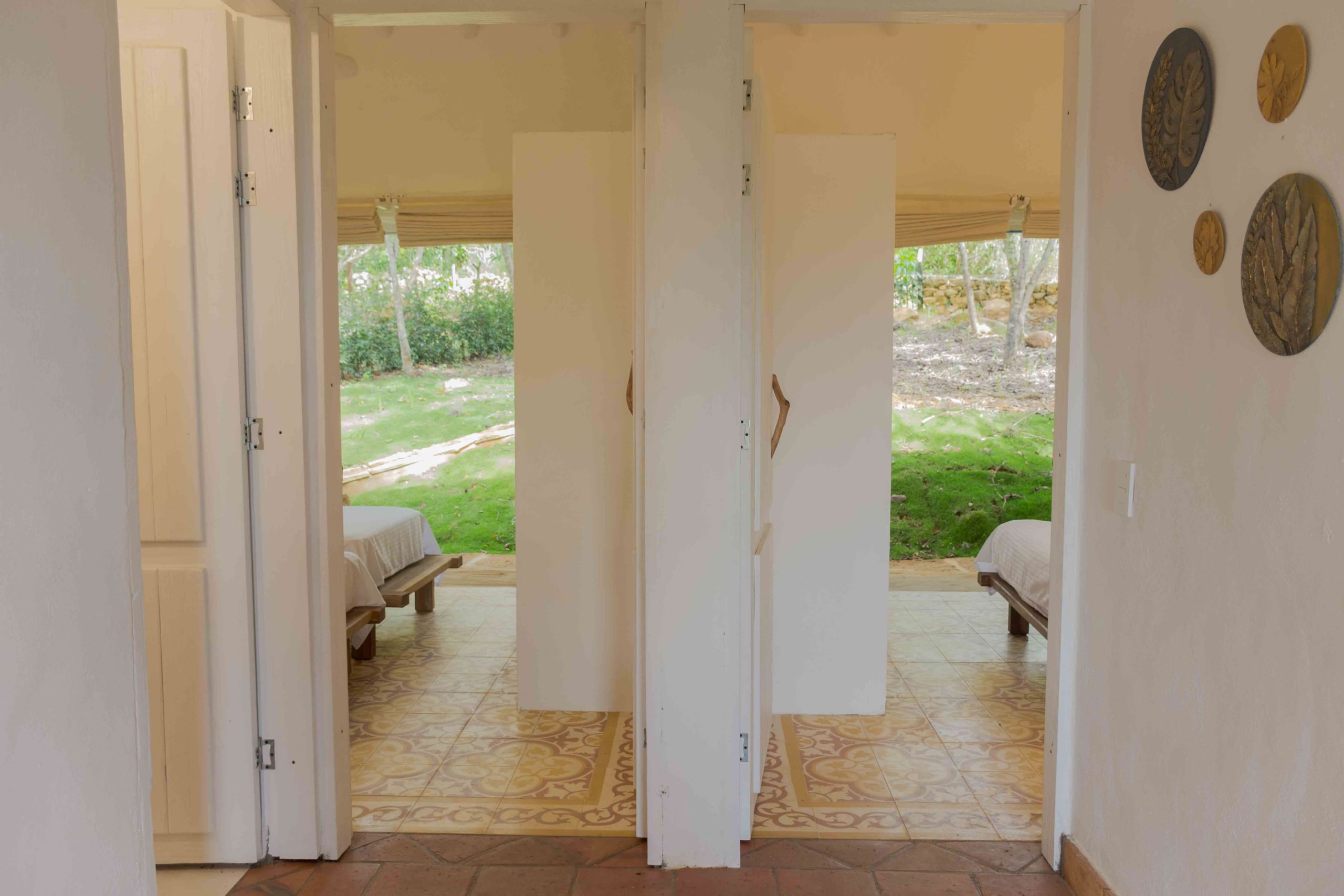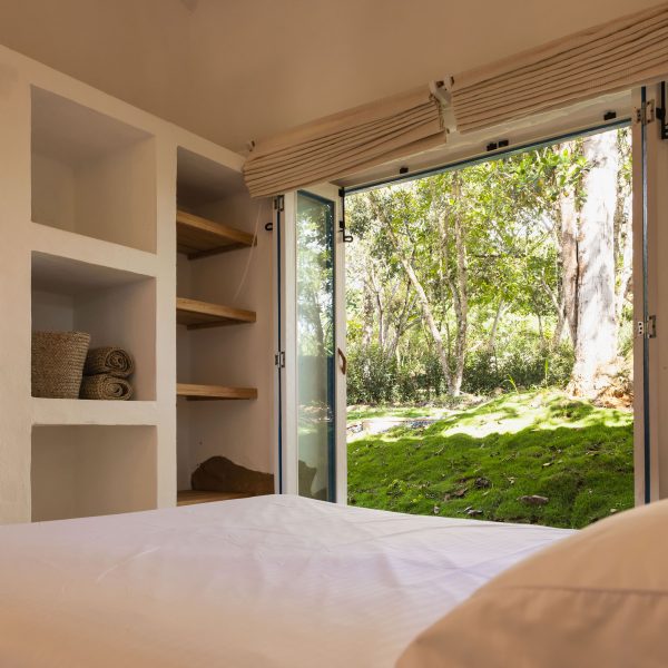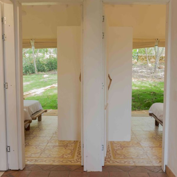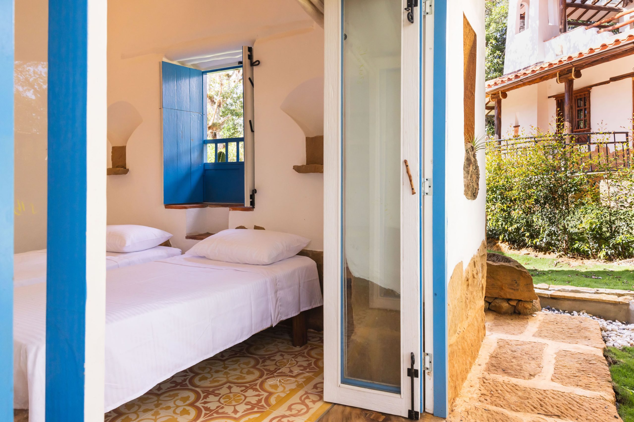 Inspirada en una casita tradicional del siglo XVII, combina techos altos con blancura interior, mobiliarios en materiales de la región y toques artísticos como la pintura en tierra y la cerámica ancestral, creando un ambiente elegante, cálido y lleno de carácter. Cuenta con hermosas vistas desde una bella terraza, que representa un caney para el secado del tabaco propio de la región.